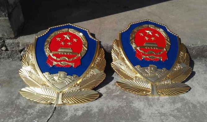 表面处理:根据设计要求对公安警徽的表面进行处理,如进行电镀、喷漆、镀金或上漆等工艺,使其表面光滑、色泽均匀、耐腐蚀。